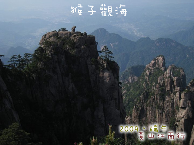 黃山的景點眾多,沒有導遊帶還真容易錯過景點呢!還好一路上都會遇到大大小小的旅行團,見到有導遊講解湊過去聽就行了。爬上了始信峰,見了連理松、雨傘松、夢筆生花、筆架峰,登上了清涼台,見「猴子觀海」,團結松,好不容易到達我們今晚的落腳處—西海飯店,放下行李後天色還早,可以去壯觀的西海大峽谷晃晃。