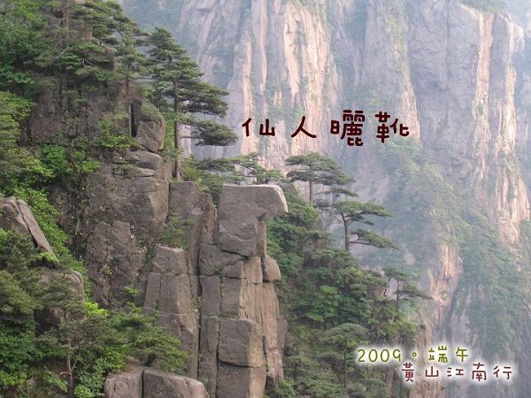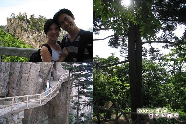 我們選擇由雲谷寺的纜車口上山,今天下午要一口氣爬到我們晚上住的西海飯店,由於纜車一口氣就把我們送上很高的位置,所以剛開始走起路來還算輕鬆愉快,不過過一會兒,咦!怎麼變成在下山了,我們可是住在山頂上阿!現在下山不就代表等下還要往上爬?是的!黃山的奧妙就在於它不是一座山,我想應該是成千上百個峰綿延不絕,而我們就是重複的登上每個峰,所以會一直不斷的上坡又下坡。